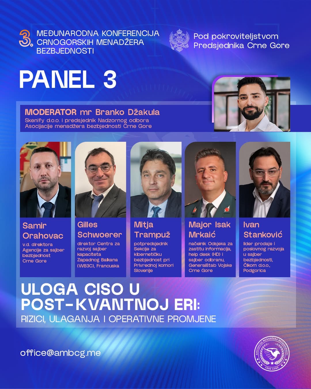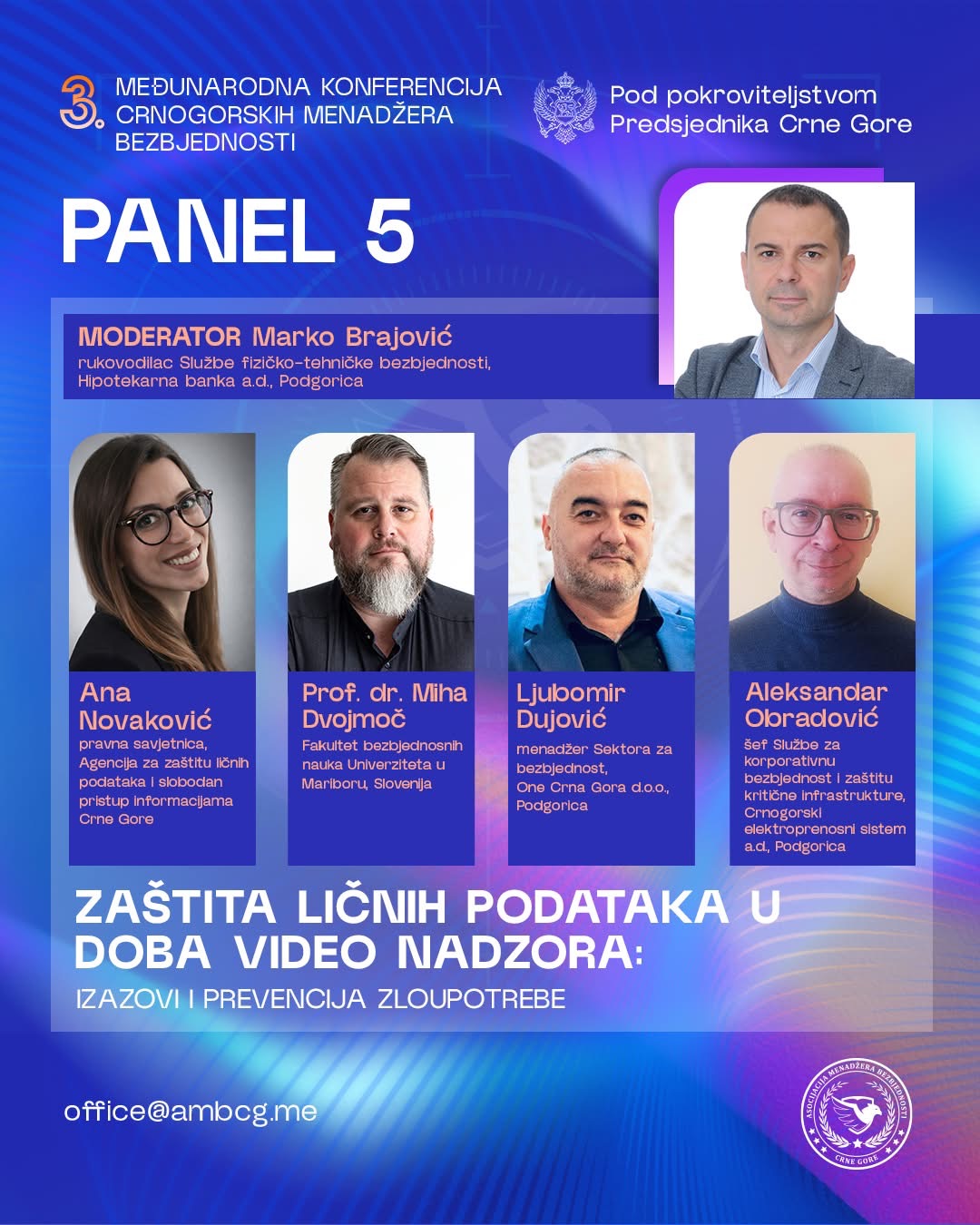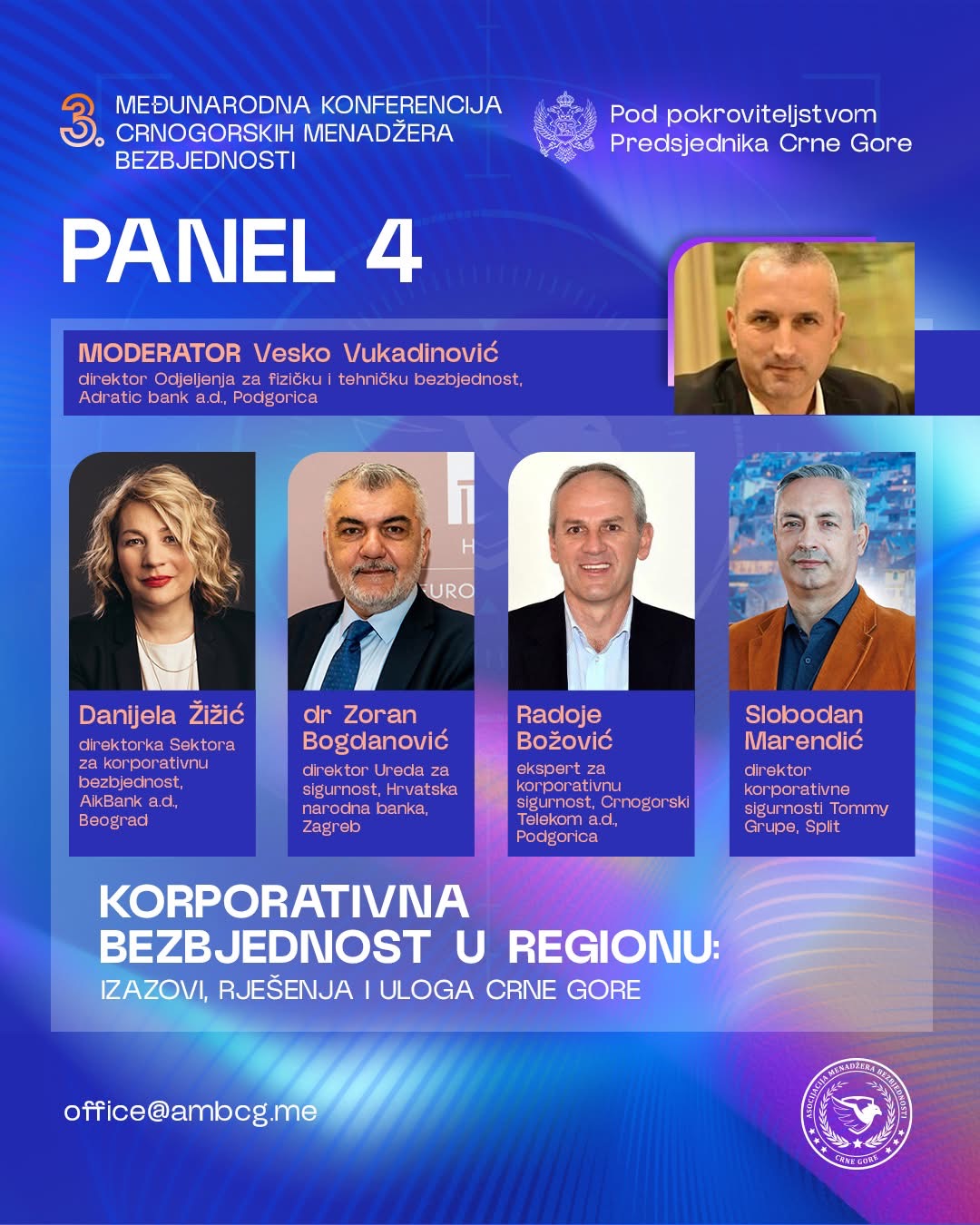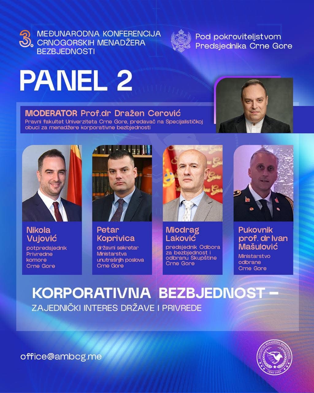 “Tokom dvodnevnog programa biće realizovane panel diskusije, stručna izlaganja i tematski okrugli stolovi posvećeni ključnim pitanjima savremene bezbjednosti, uključujući korporativnu i sajber bezbjednost, zaštitu kritične infrastrukture, regulatorni okvir, kao i primjenu savremenih tehnologija i vještačke inteligencije u upravljanju bezbjednosnim rizicima”, poručuje se u saopštenju.