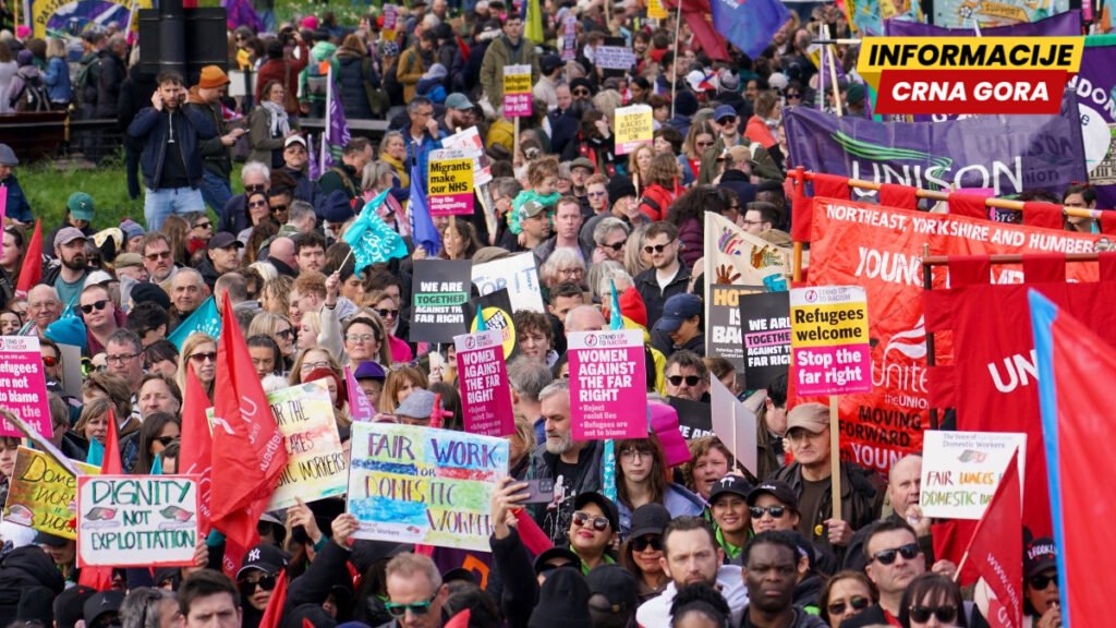 Podršku skupu Saveza zajedno pružili su sindikati i organizacije civilnog društva, a prema procjeni policije, marš je bio jedan od najvećih u poslednjih nekoliko godina u britanskoj prijestonici, sa očekivanih oko 30.000 učesnika, prenosi Rojters.