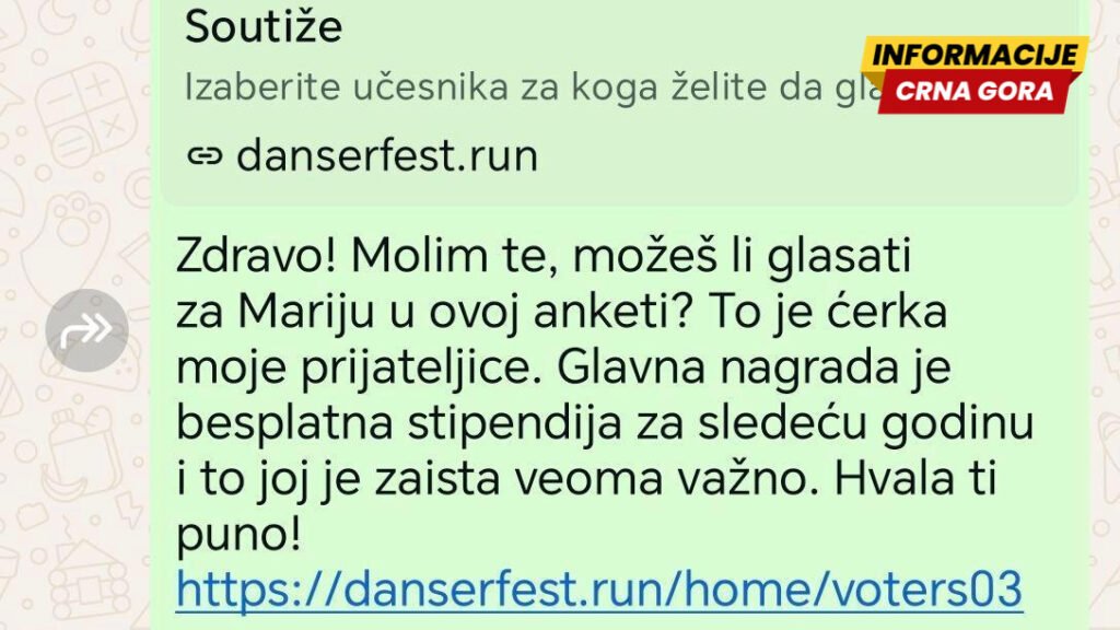 „Zdravo! molim te, možeš li glasati za Mariju u ovoj anketi? To je ćerka moje prijateljice".