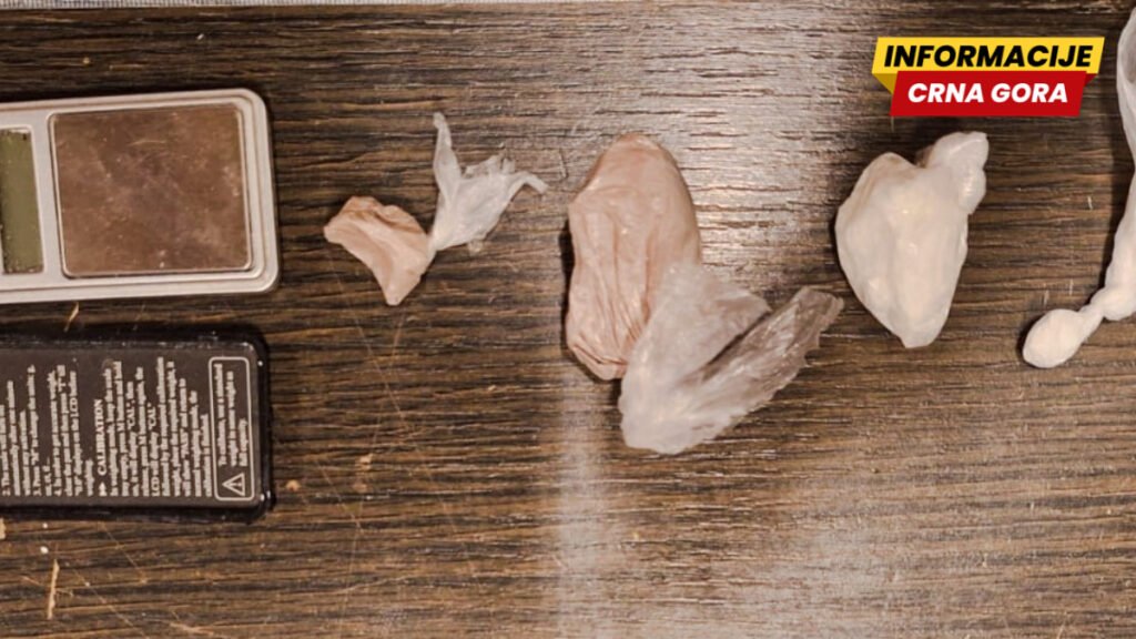 <!—->”Policijski službenici su, naime, sinoć, 11.04.2026. godine oko 19.30 časova, u dijelu grada Preko Morače, kontrolisali vozilo u kojem su se nalazili A.Đ. i još jedno lice. Kod A.Đ. je pronađeno pakovanje sa 5.56 grama materije za koju se sumnja da se radi o kokainu, nakon čega je doveden u službene policijske prostorije gdje je policijskim službenicima predao još dva pakovanja sa sadržajem materije za koju se sumnja da je opojna droga heroin, težine 9.50 grama i 1.17 grama, kao i vagu za precizno mjerenje”, navode iz Uprave policije.