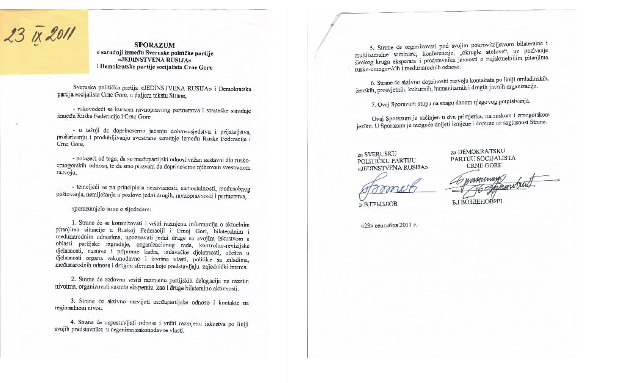 Šta piše u sporazumu koji su 2011. godine potpisali DPS i Jedinstvena Rusija