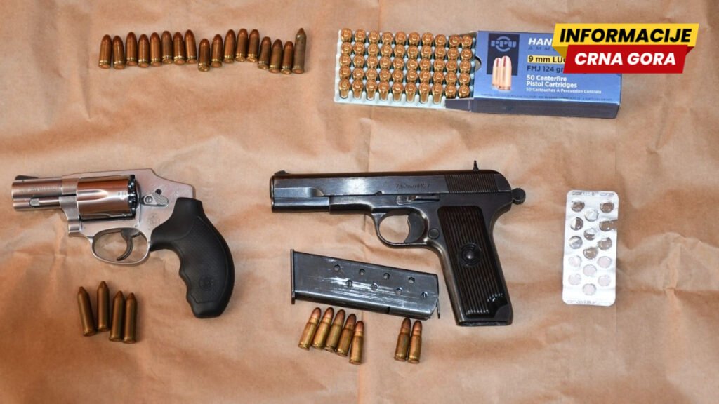 “Pretresom stana, odnosno apartmana u jednom apartmansko-stambenom objektu u Bečićima, koji koristi B.Ć., policija je pronašla pištolj Tokarev TT sa sedam komada pripadajuće municije, revolver Smith Wesson, 357 Magnum, sa četiri komada pripadajuće municije, kao i još 67 komada druge vrste municije i šest komada tableta sa liste opijata”, dodaju oni.