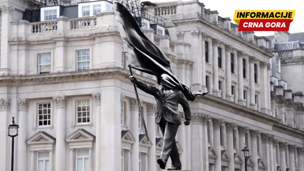 Skulptura muškarca u odijelu koji maršira sa postamenta i nosi zastavu koja mu pokriva i lice nalazi se na centralnom londonskom trgu, nedaleko od statua Edvarda VII i Florens Najtingejl, kao i Spomenika Krimskom ratu, prenosi BBC.