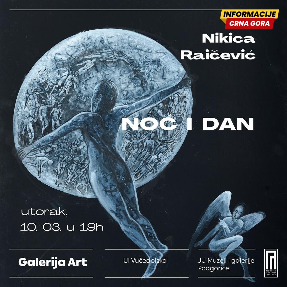 Izložba akademskog umjetnika Nikice Raičevića pod nazivom "Noć i dan", biće svečano otvorena danas u Podgorici, u Galeriji "Art" JU Muzeji i galerije Podgorice, u 19 časova.
