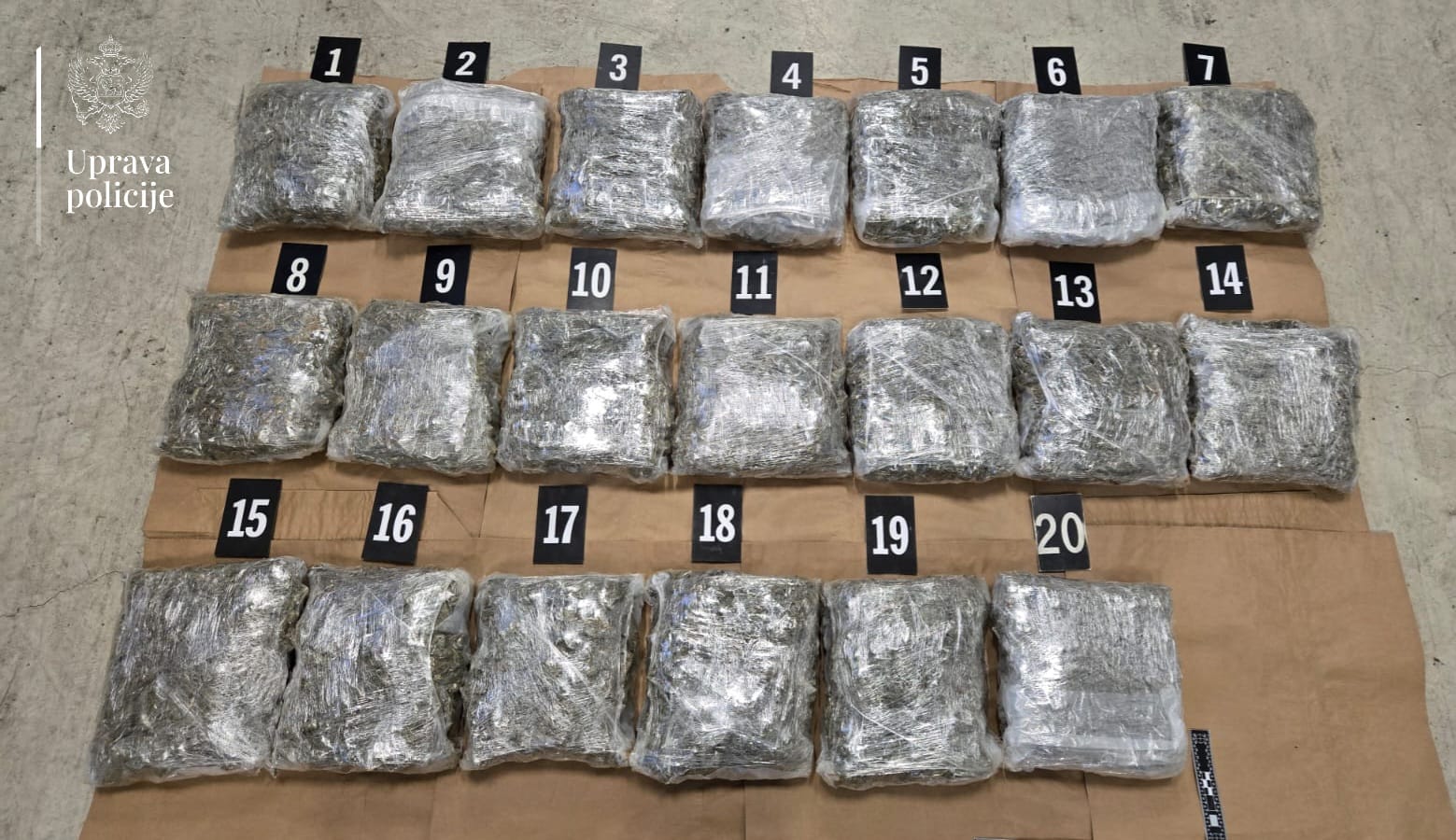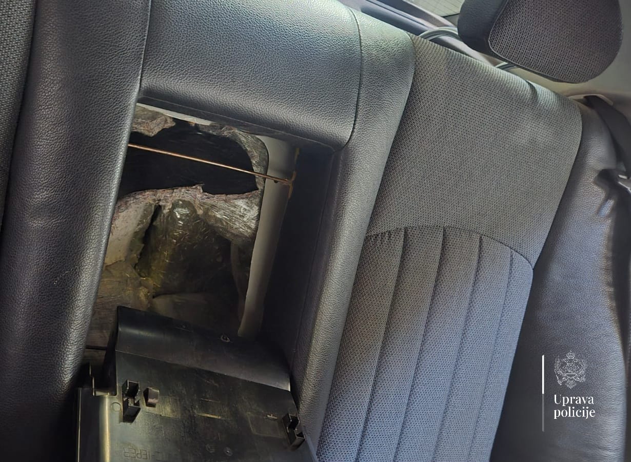 “Tom prilikom je u naslonu zadnjeg sjedišta, odnosno između naslona sjedišta i prtljažnika, otkriveno posebno izrađeno spremište – tzv. štek, u kojem se nalazilo 20 pvc pakovanja sa opojnom drogom marihuanom, ukupne mase oko 21 kilogram”, navode iz UP.